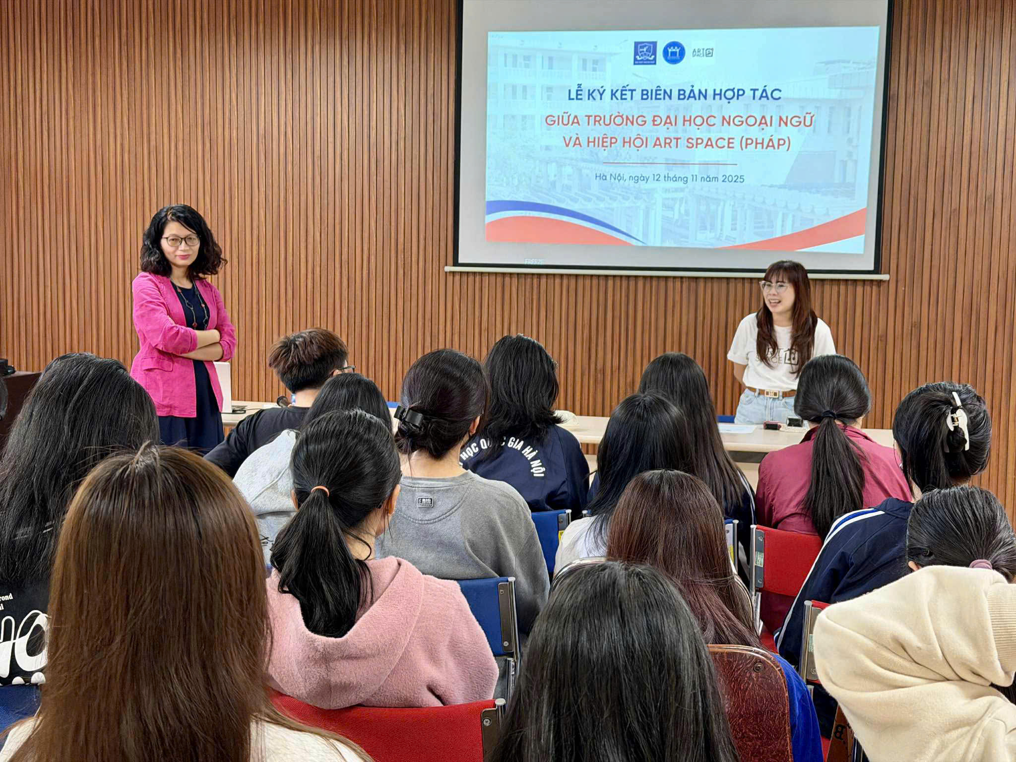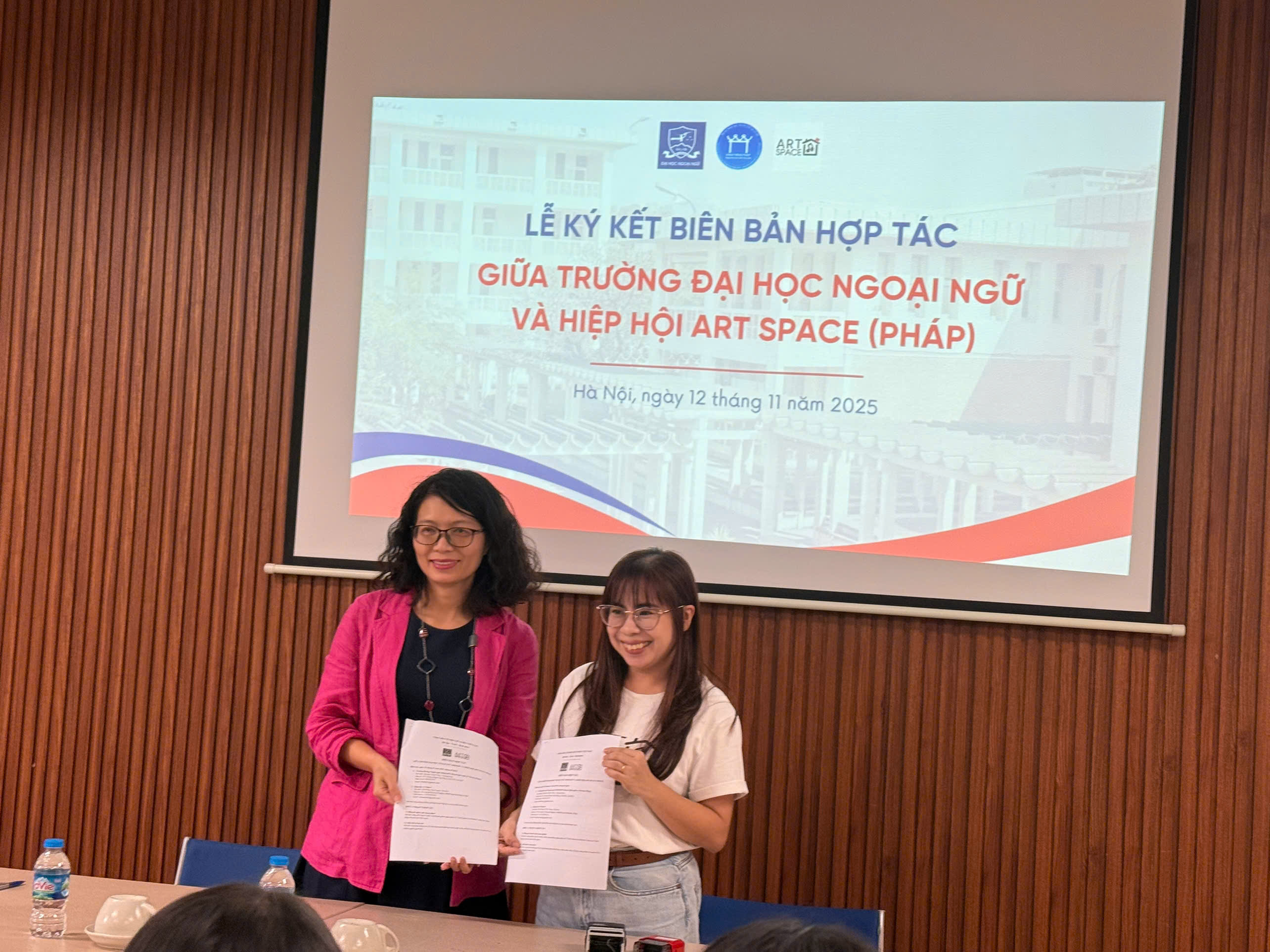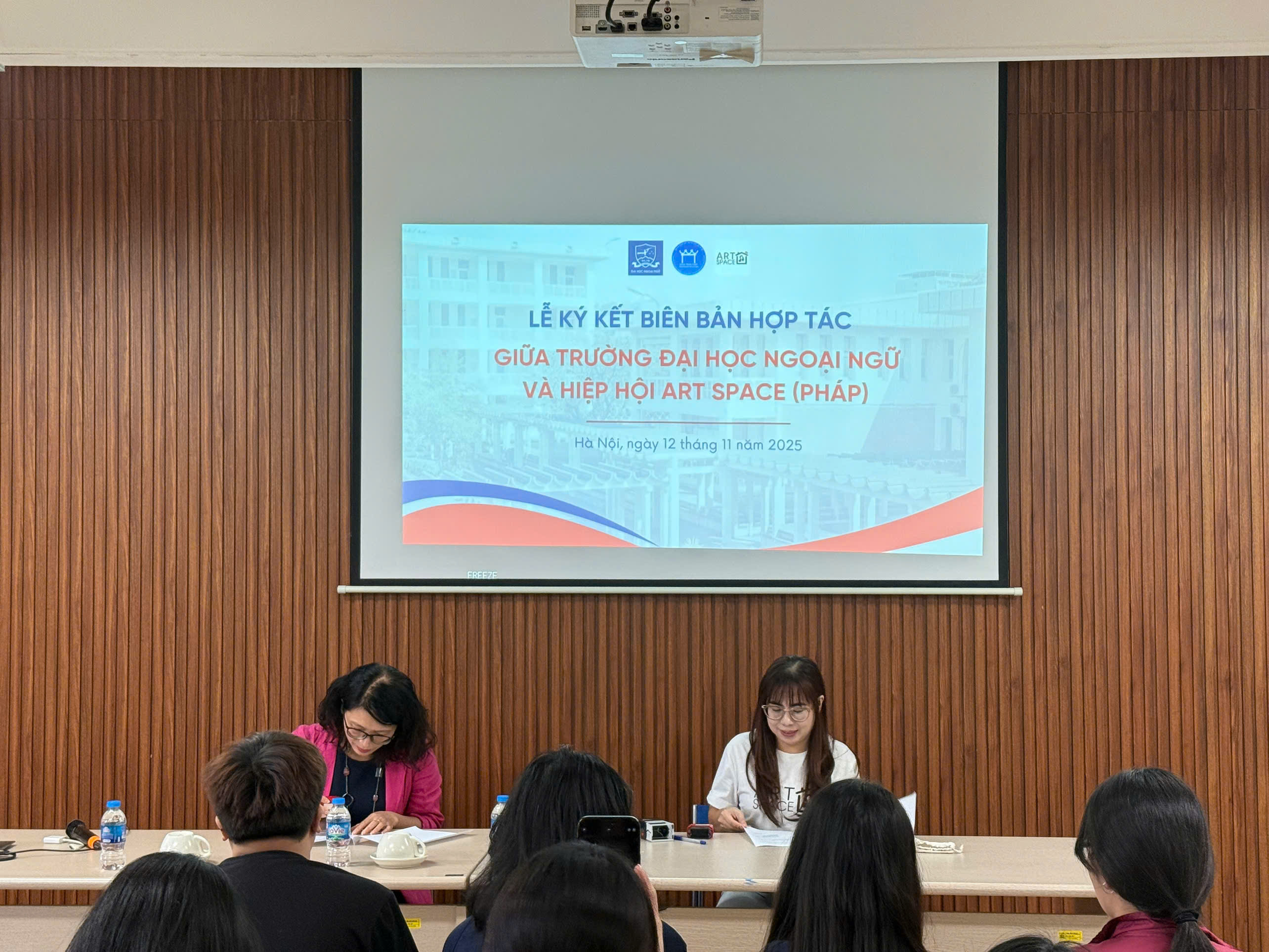 Khép lại chương trình, lễ ký kết Biên bản hợp tác giữa Khoa Pháp, Trường Đại học Ngoại ngữ – ĐHQGHN và Hiệp hội Art Space đã chính thức diễn ra trong không khí trang trọng. Sự kiện này hứa hẹn mở ra nhiều cơ hội hợp tác quốc tế, trao đổi học thuật và dự án sáng tạo trong tương lai, góp phần đưa sinh viên ULIS đến gần hơn với thế giới nghệ thuật và truyền thông toàn cầu.